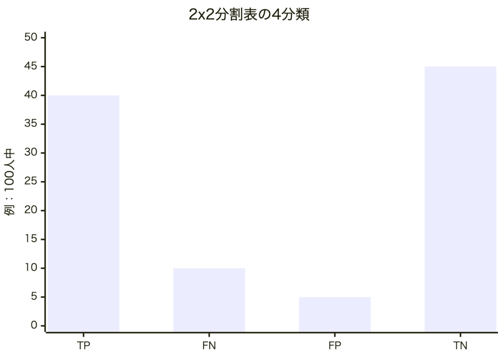 | TP | True Positive(真陽性) | 正しく陽性 | 病気あり → 陽性判定 ✅ |