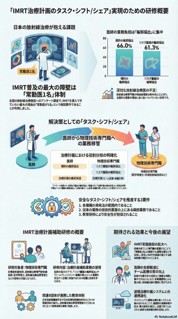 約20年にわたる日本のIMRT普及の歴史と、放射線治療専門医不足という構造的課題に対する、業界全体の取り組みの成果なのです。