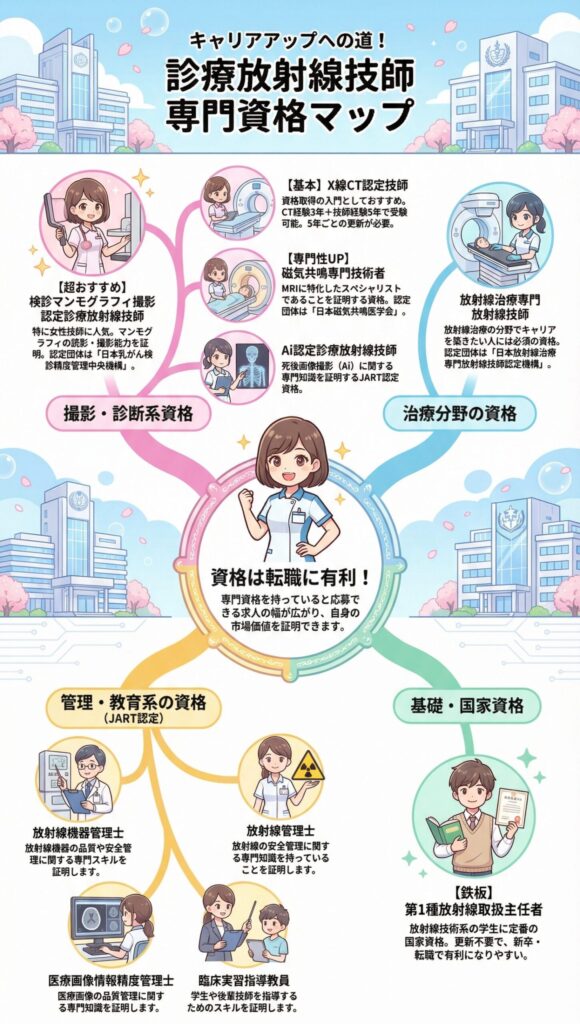 - 認定資格は転職で有利。特にマンモ認定は人気