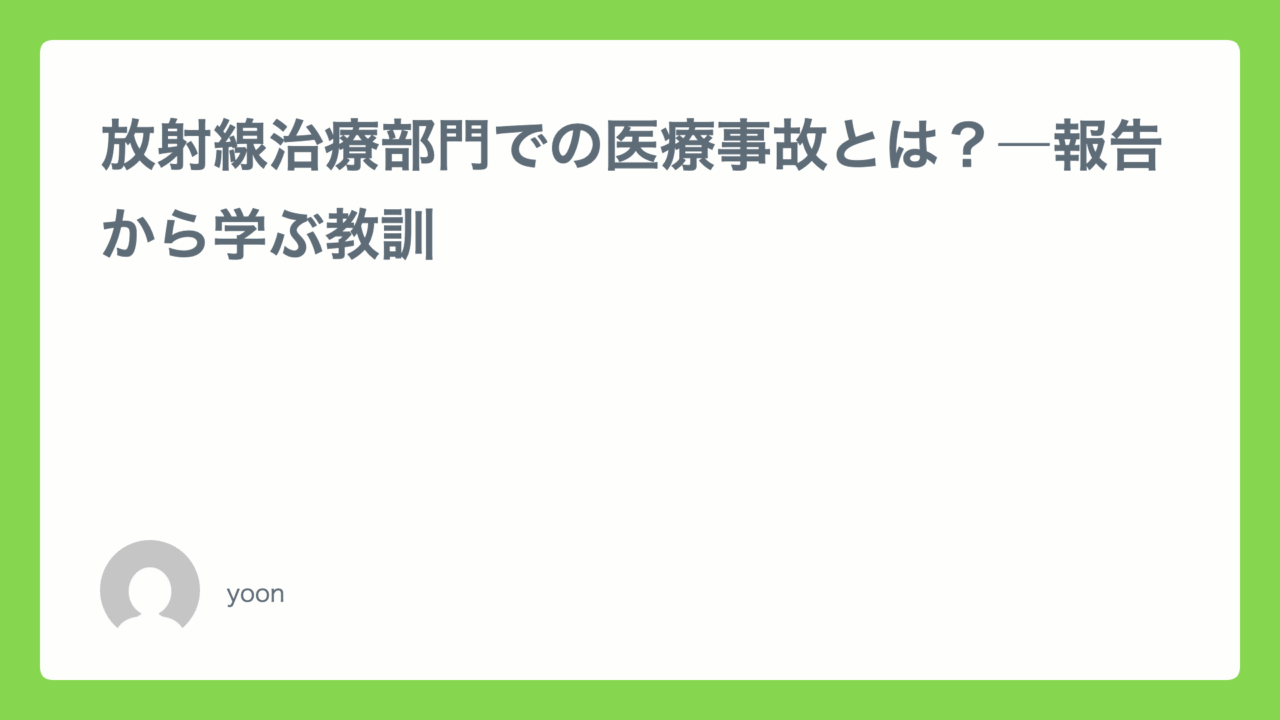放射線治療の医療事故事例について、いくつか具体例を以下に紹介します。それぞれの事例では事故の発生要因と改善策が明示され、今後の事故防止に役立てられています。