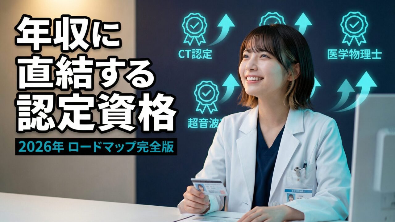 CT・MRIの施設基準が求めているのは「認定資格を持った技師」ではなく、「専従・専任の技師を配置すること」だ。超音波検査士・放射線治療専門放射線技師・医学物理士も同様に、資格の有無が直接点数に連動する仕組みではない。ただし、これらの認定資格は専門性の高さを客観的に示す証明書として転職市場・施設内評価の両面で非常に強く機能する。「資格=即年収アップ」ではなく、「資格=より良い施設・より高い条件を選ぶための交渉力」と捉えるのが正しい活用法だ。