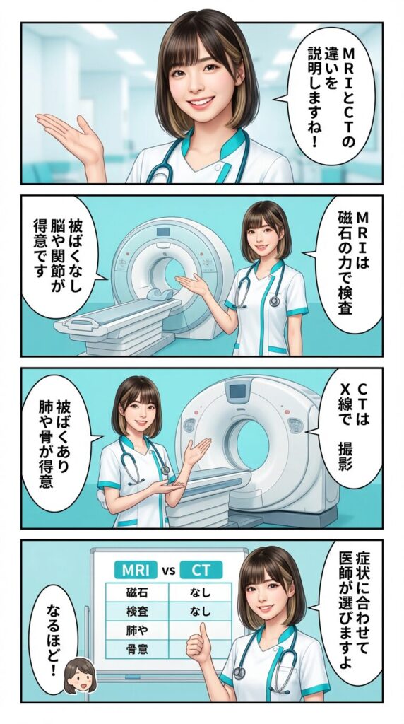 毎日のようにMRI・CTの両方を扱ってきた経験から言うと、患者さんには以下のように説明しています。