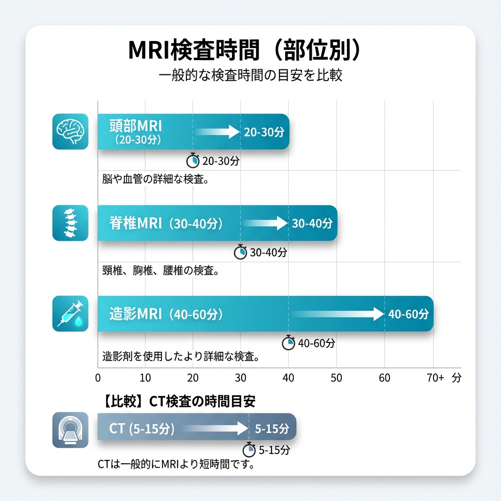 | 造影あり | +10〜15 分 | +15〜20 分 |